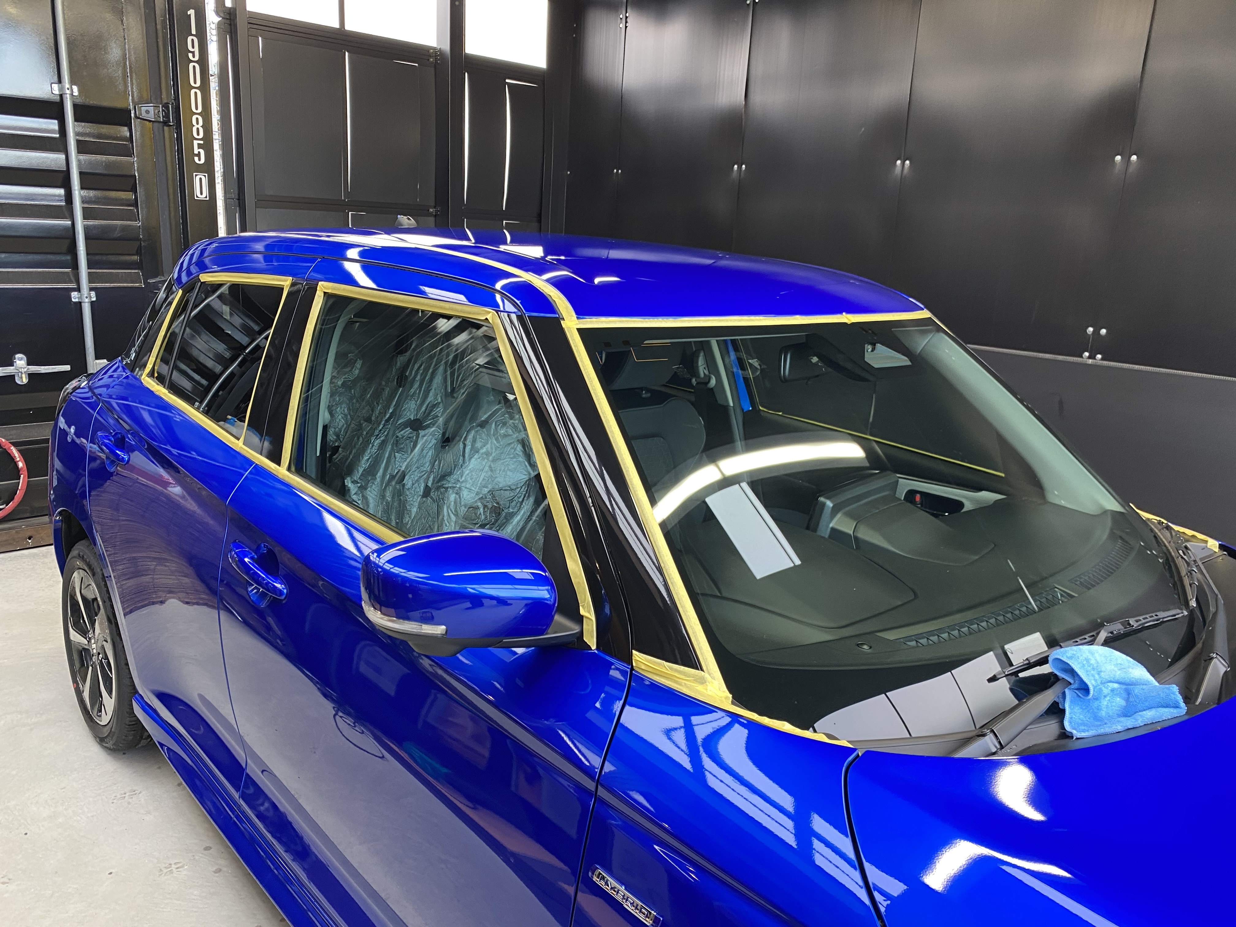当社では研磨後に洗車しますので窓や細かい隙間まではマスキングしません。ただし洗車が出来ない特殊な車は全てマスキングします。