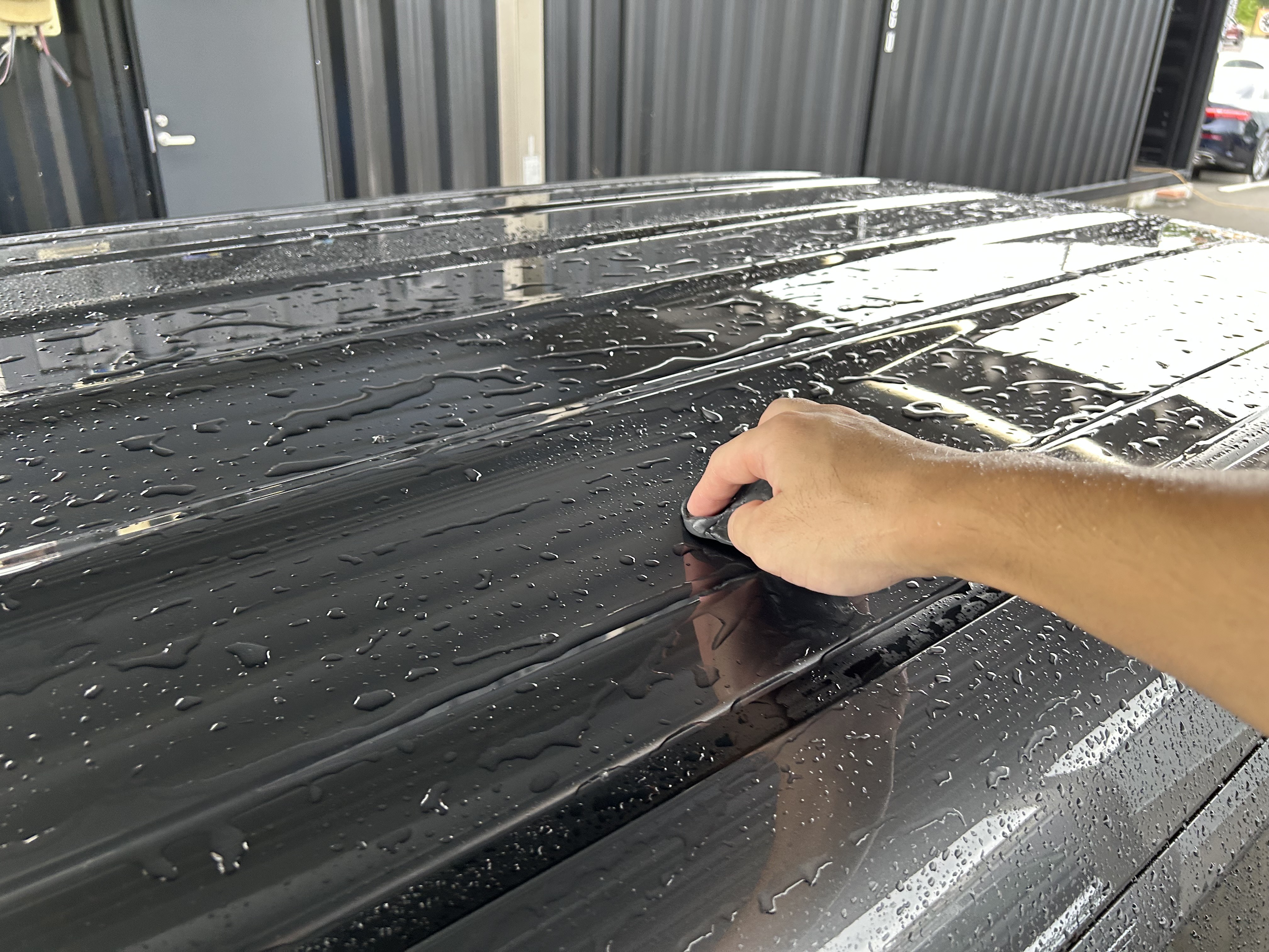 当店では、研磨施工の前に 「洗車 → 鉄粉(虫、ピッチタール、花粉)除去 → マスキング」 の3工程を丁寧に行います。
